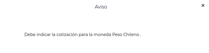 En una empresa que tiene como moneda principal pesos chilenos, al querer aplicar documentos se visualiza el siguiente cartel: