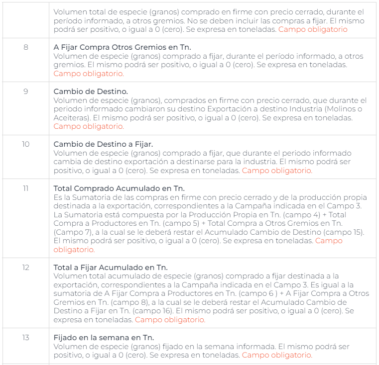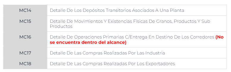 Rige desde el 1º de abril de 2004 la nueva modalidad para la información de operaciones en el comercio de granos, según Resolución Conjunta SAGPyA N.º 154/05 y AFIP N.º 1855/05 y Disposición EX - ONCCA N.º 3793/05, cabe agregar que mediante la Resolución EX - ONCCA N.º 7, de fecha 8 de marzo de 2007, se realizó una recategorización de los operadores que actúan en el comercio de granos.