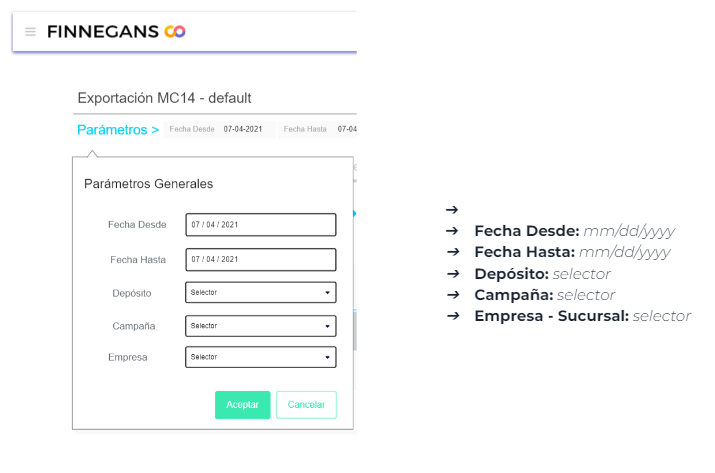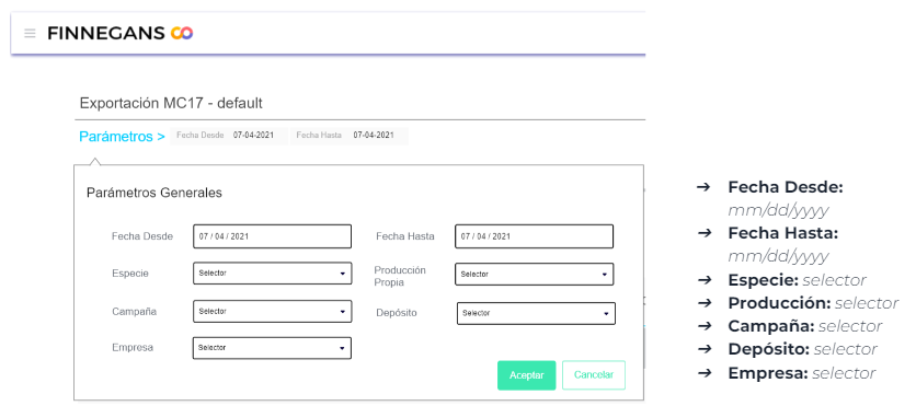 Este instructivo tiene como objetivo describir los datos que se exportan para realizar la presentación de los formularios MC14, MC15, MC17, MC18 según corresponda a la actividad.
