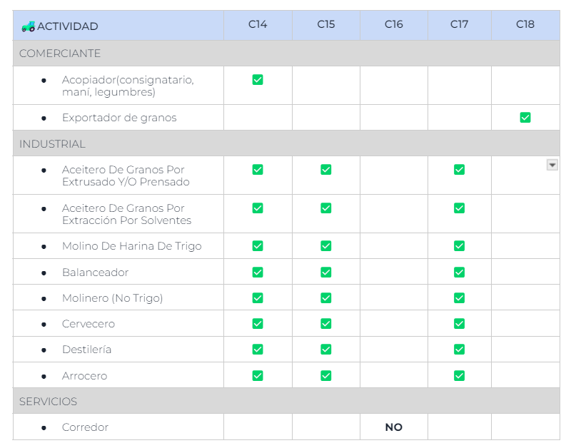 A partir del 1 de enero del año 2008, se adecuan las categorías de los distintos operadores de granos, por medio de la Resolución EX – ONCCA Nro. 4956/07 – AFIP N° 2324/07 conjuntamente con AFIP se establecieron nuevos requisitos, plazos y condiciones que los operadores de granos deben tener en cuenta para el suministro de la información.