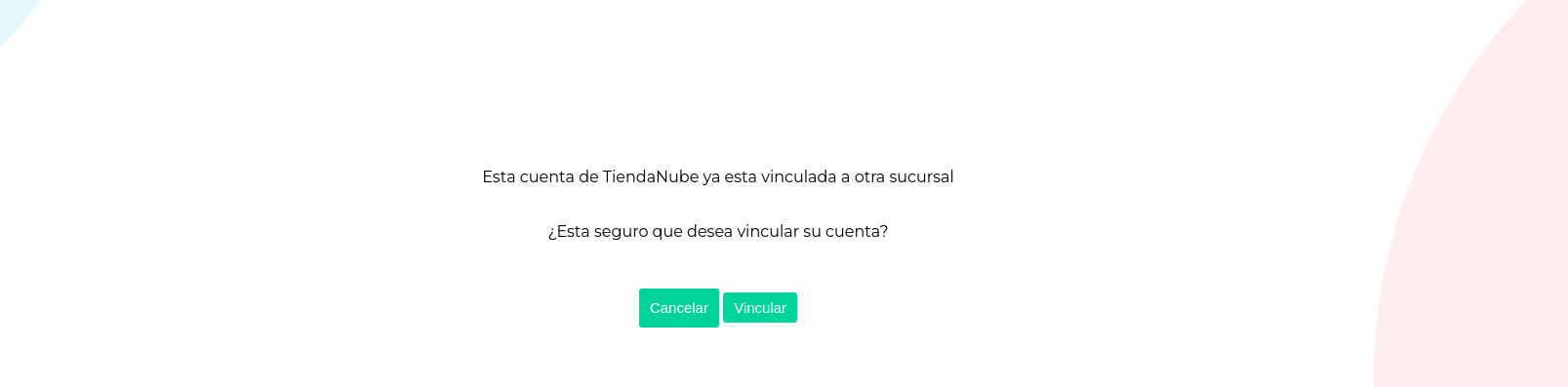 Si la cuenta ya se encuentra vinculada a una sucursal mostrará un mensaje de aviso para continuar o cancelar