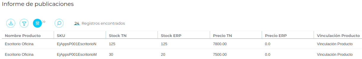 Conocer si los productos publicados están vinculados o no al ERP.