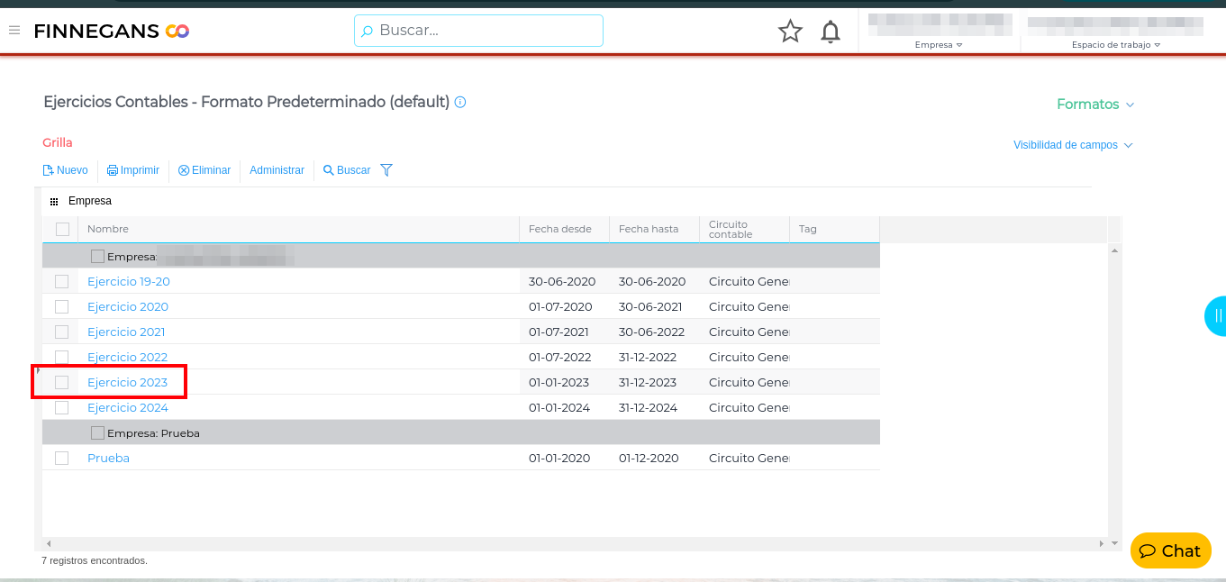 Ingresar a Menú → Gestión Empresarial → Transacciones → Ejercicios Contables.