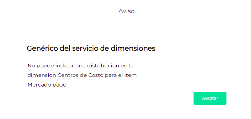 El sistema emite el siguiente mensaje al modificar un Asiento Genérico: “No puede indicar una distribución en la dimensión Centros de Costo para el ítem XXX”