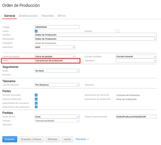 Por último, deberá configurarse aquellos tipos de documentos que estén configurados para dar de alta lote/partida, deben estar parametrizados para utilizar proceso productivo o fórmula de producción.