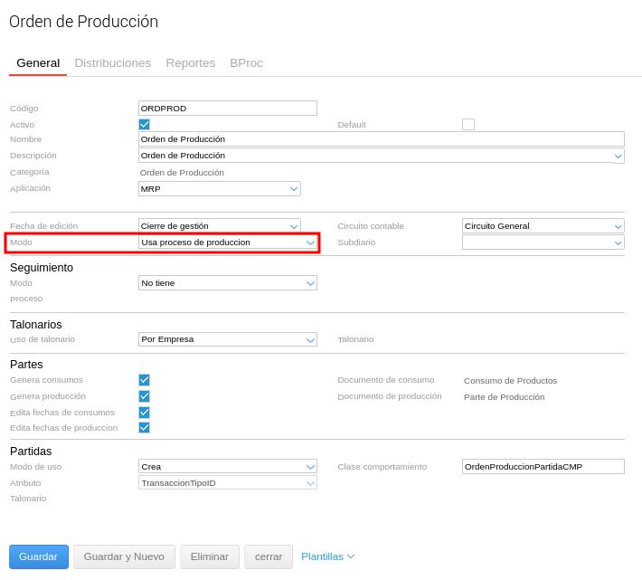 1. Primero se debe configurar el tipo de Partida con la lógica deseada