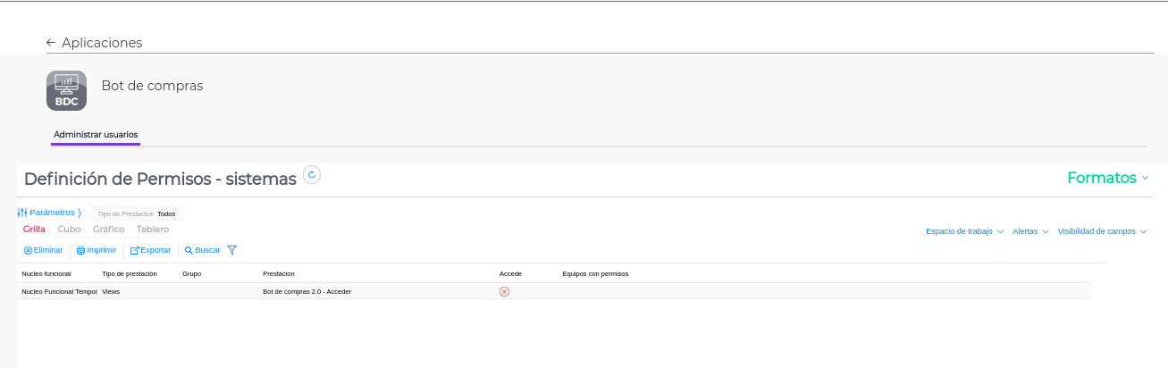 - En la sección de administración de la aplicación, verá una opción para “Definición de Permisos”.