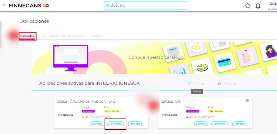 - Dentro de cada aplicación que haya descargado previamente del catálogo, seleccione “Administrar”.