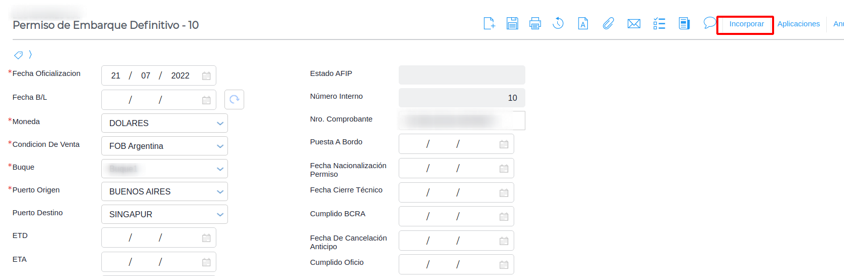 3 - Ir al Permiso de Embarque e ingresar al asistente de Incorporar Facturas, el mismo va a traer todas las facturas que correspondan.
