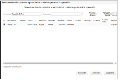 Se genera una nueva Recepción de Compra con Seguimiento con asistente donde se debe elegir la Orden de Compra asociada al caso: