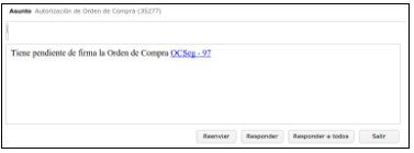 La idea es que el mail informe al Gerente de compras que tiene pendiente una Orden de Compra para firmar.