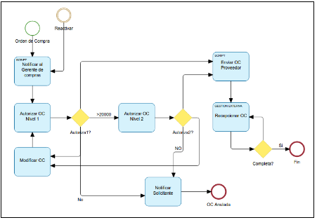 Proceso BPM de tipo Transacción ERP que permite realizar un control sobre el importe de la Orden de Compra generada por el usuario, basándose en 2 niveles de autorización