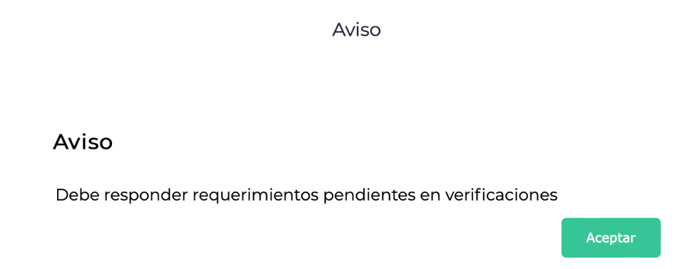 Al cargar un nuevo proveedor y hacer click en el botón Obtener Datos AFIP se visualiza un cartel con la siguiente leyenda: “Debe responder requerimentos pendientes en verificaciones”