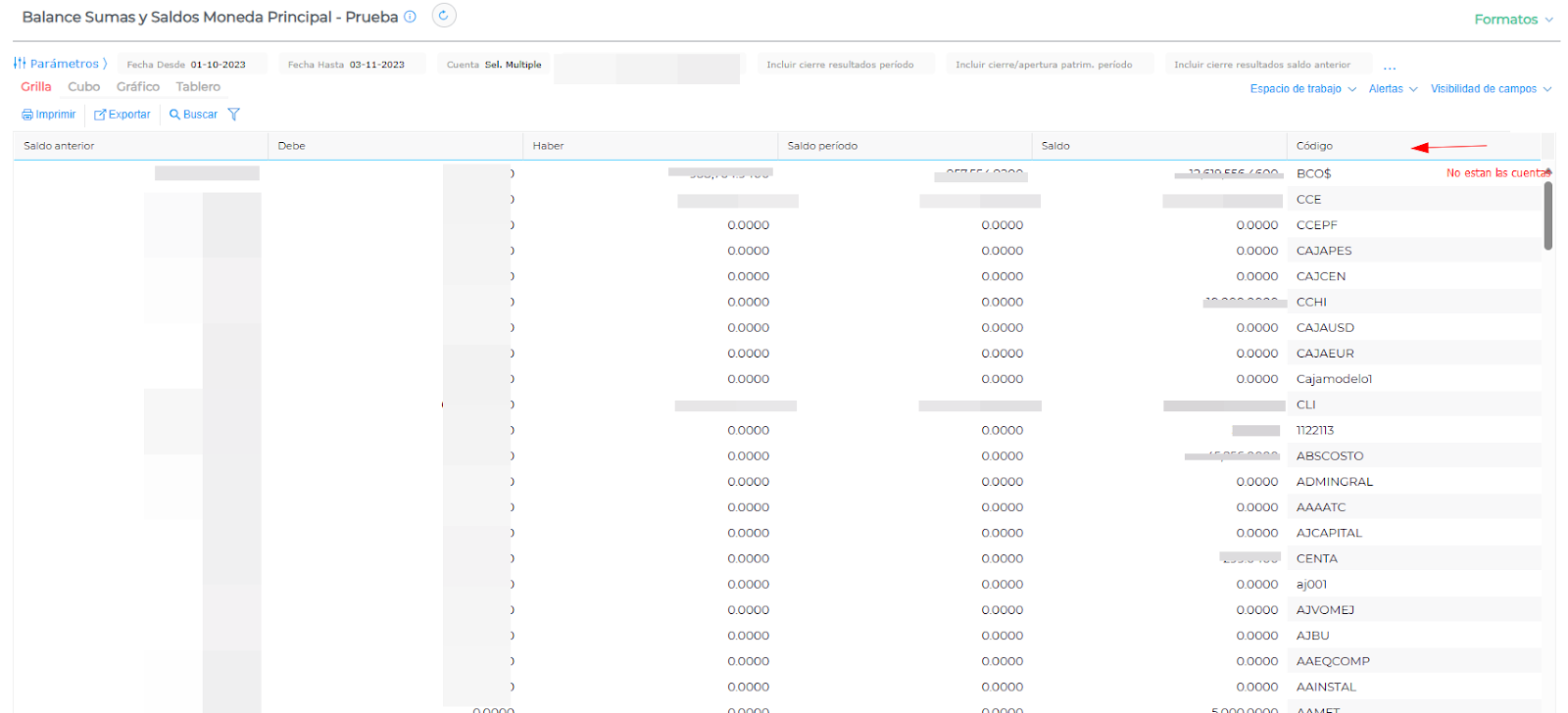 Con estos cambios y con el formato, indicado en la imagen anterior, ya debería poder visualizar la cuenta dentro del informe: