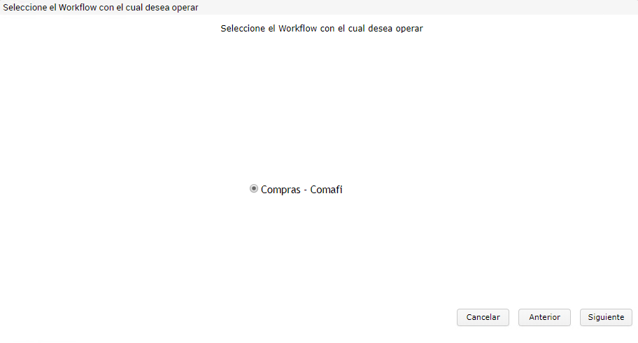 El asistente permite realizar una factura de compra que parte desde una transacción anterior, como la orden de compra. En este caso, presionar “Compras - Productos e Insumos”.