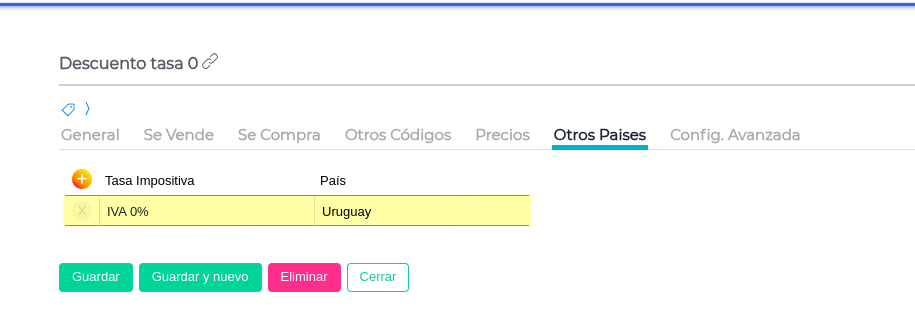 Si el concepto calculado esta configurado como multipais, en la solapa otros países configurar la tasa cero.