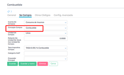 Se debe configurar en el maestro de productos el concepto correspondiente.