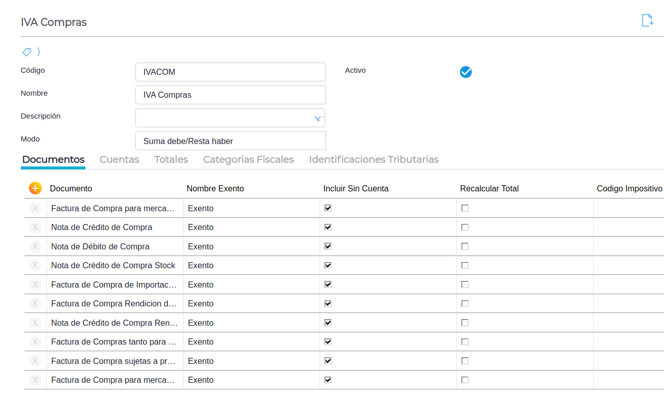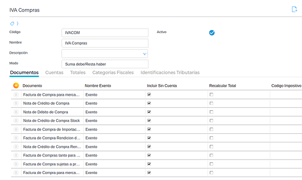 Para el caso del libro iva compras, se deben crear 5 tipos de documentos :