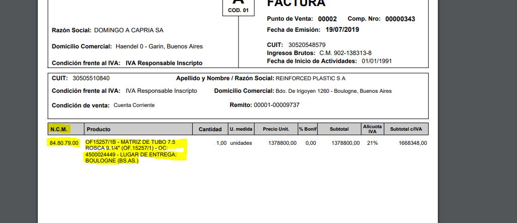 N.C.M: es el campo “código mercosur” del maestro de productos”