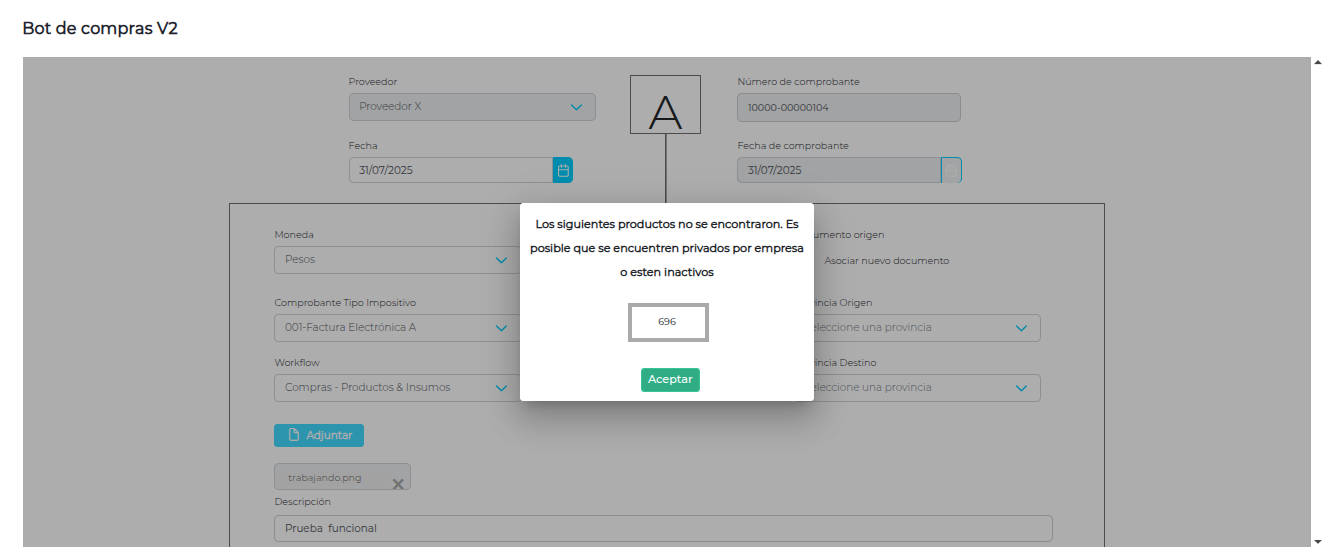 ¿Cómo corregir el mensaje de error en el bot de compras "Los siguientes productos no se encontraron. Es posible que se encuentren privados por empresa o estén inactivos?