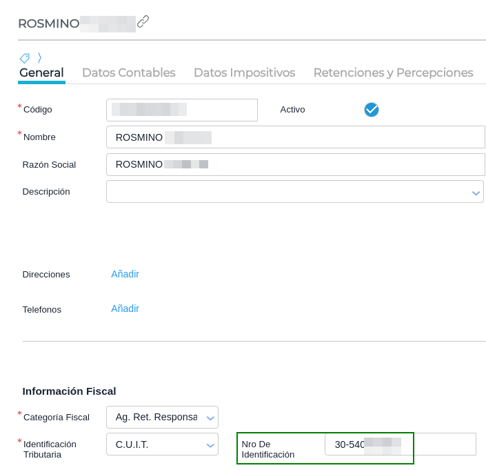 Como se visualiza el número de identificación tributaria en el Maestro, el Proveedor “ROSMINO”: