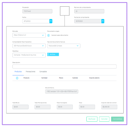Para contabilizar una factura se deberá completar los datos pertenecientes a la misma.