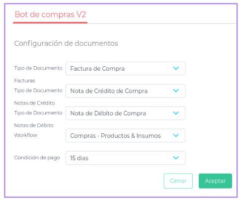 El objetivo del Bot de Compras es obtener información digital de diferentes fuentes para facilitar el registro y automatizar la contabilización de documentos en el sistema de gestión.