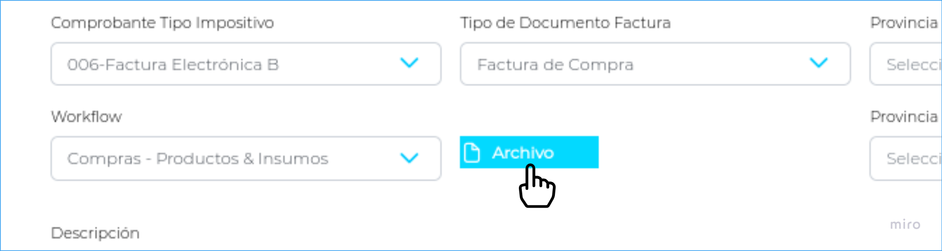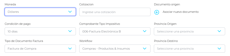 - Provincia Origen (se obtiene de la dirección de entrega del proveedor) / Destino (se obtiene de la dirección de la empresa (sucursal) en la que se encuentra logueado al momento de contabilizar la factura).