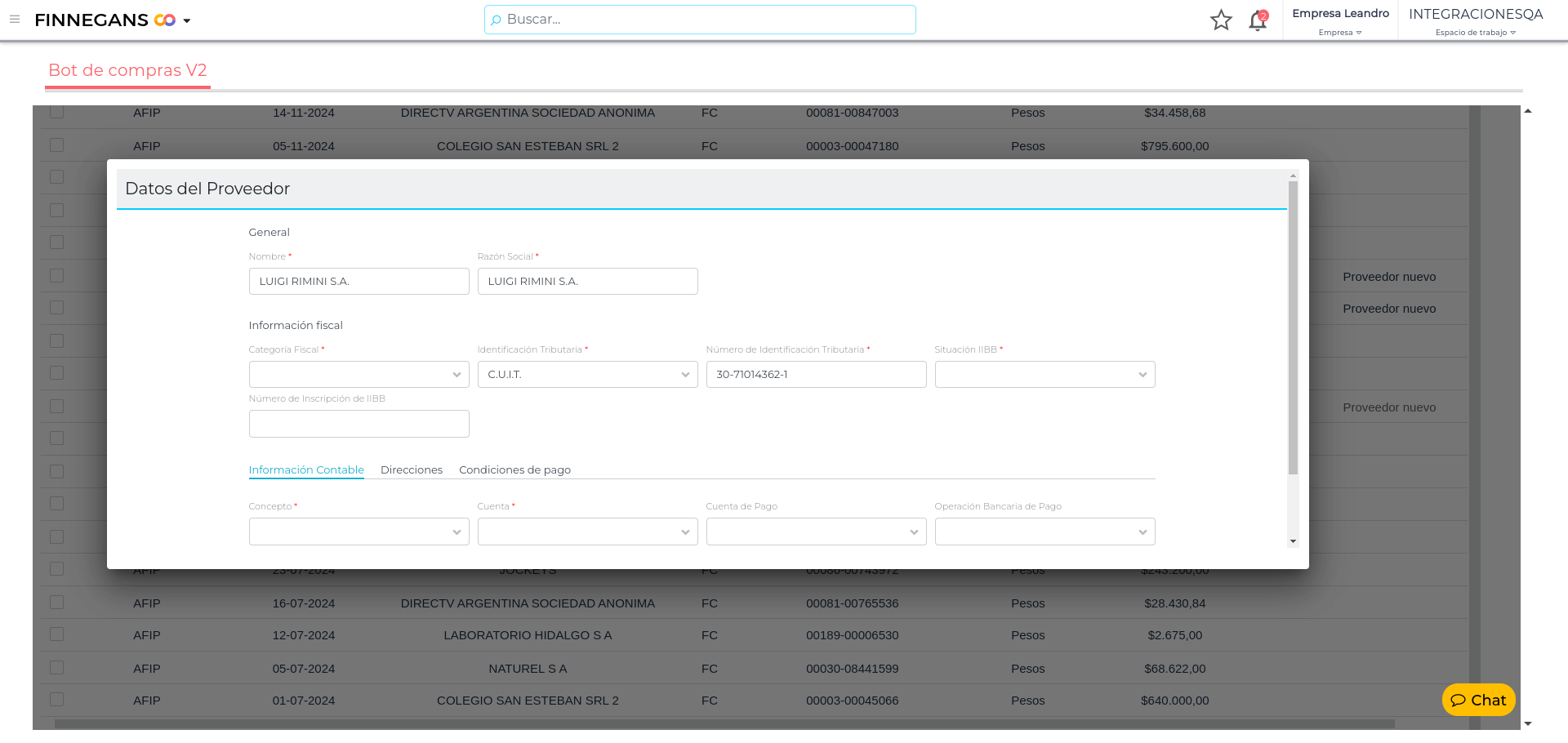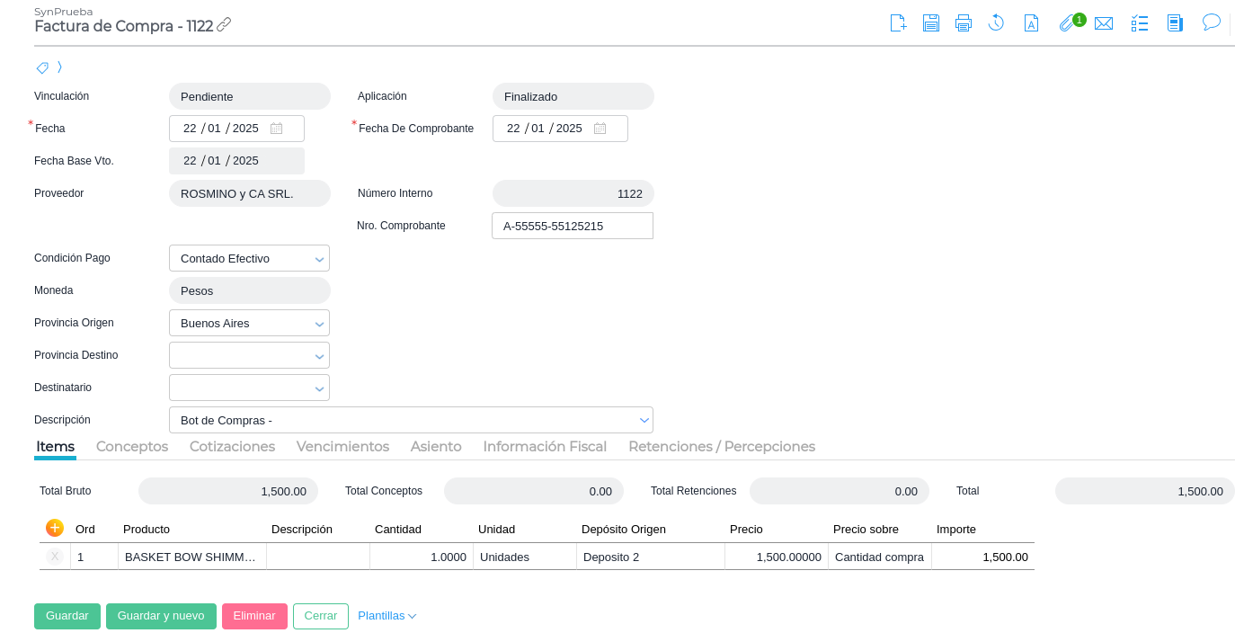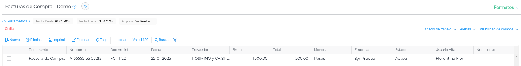 Las facturas contabilizadas desde la aplicación se identifican desde ERP mediante la descripción “Bot de Compras”.