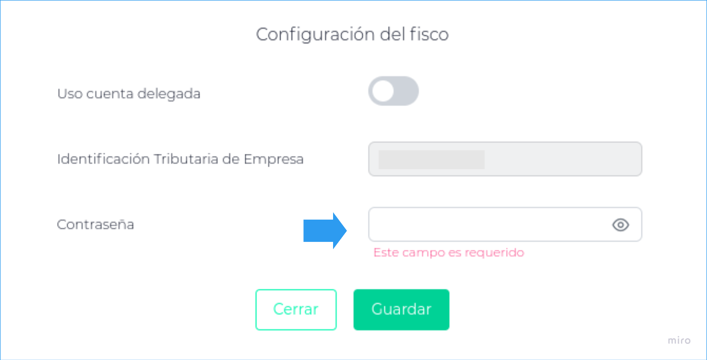 Si la empresa que va a configurar ingresa a AFIP directamente, sin cuenta delegada, deberá completar sólo la información de la contraseña y GUARDAR.