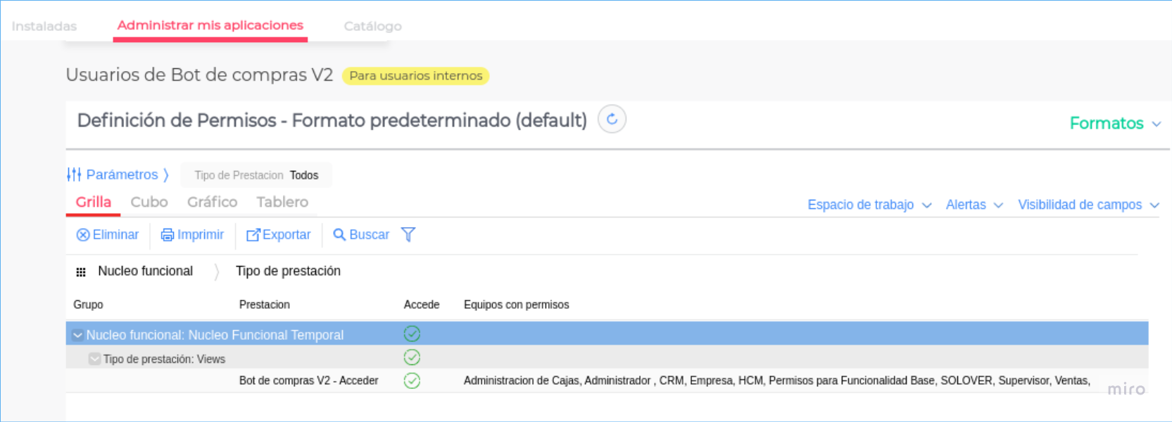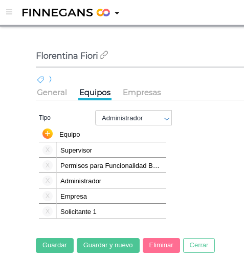 Verificar los “Equipos” asignados al usurio interno que operará el Bot de Compras. Ejemplo: supervisor