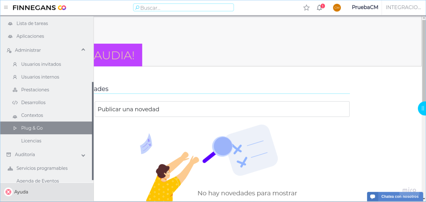 Desde Menú izquierdo → Administrar → Plug & Go podrás ingresar a la vista de las Aplicaciones.