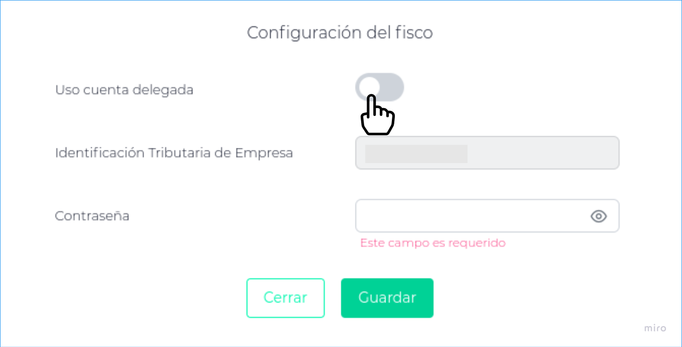 En este caso, será requerido completar Identificación Tributaria y Contraseña, de la persona/entidad en la que delega esta operación.