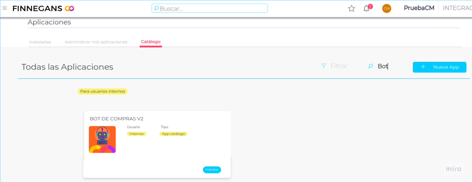 En la solapa “Catálogo”, deberás buscar la aplicación e instalarla.