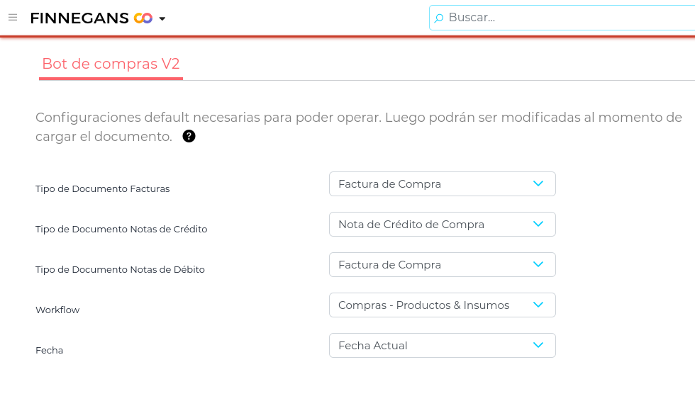 Si el único origen activo es AFIP, por default la aplicación descargará todas las facturas de proveedores con ese origen, y NO deberán configurar nada en esta sección.
