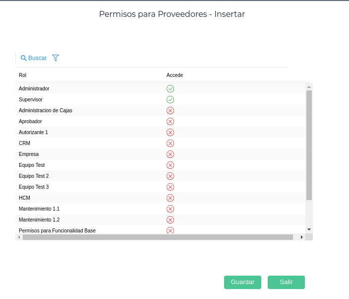 Si por ejemplo, el usuario tiene asignado equipo “Supervisor” y en definición de permisos el mismo no está habilitado (check verde) para la inserción de Proveedores, ese usuario cuando opere el bot de compras, no tendrá permisos para crear nuevos proveedores.