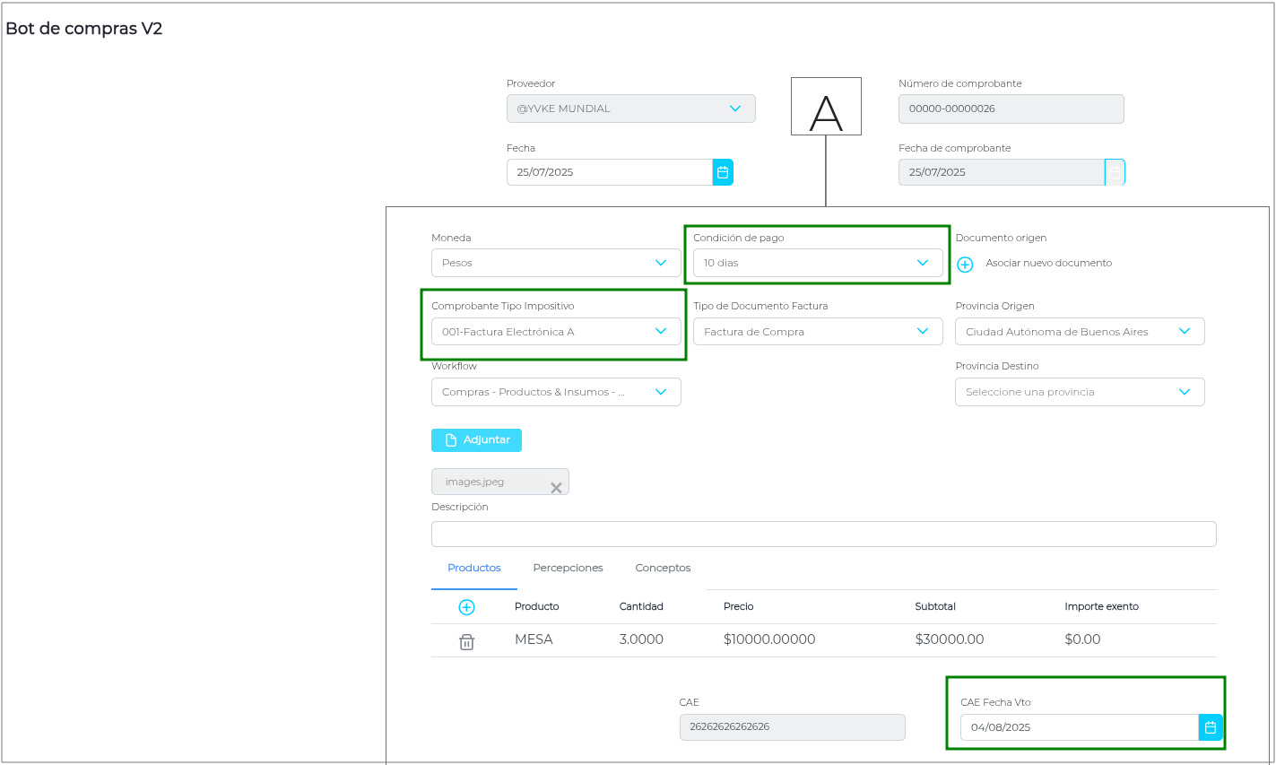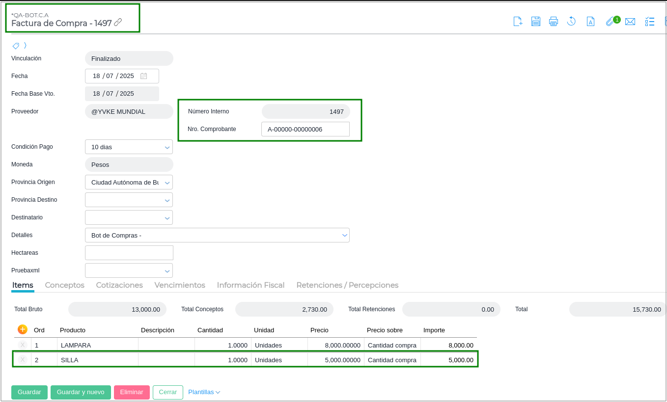 Para conocer más sobre el comportamiento de la configuración del campo “Edición Restringida” acceder a Asociar un documento origen a una factura de compras en el Bot de compras