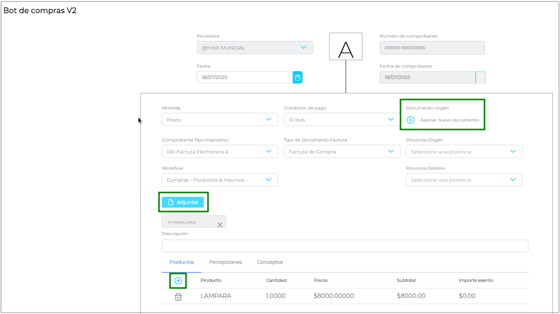Anteriormente, el usuario del Bot de Compras no tenía la posibilidad de editar determinados campos de la Factura de Compra, cuando esta tenía como origen el Portal de Proveedores, tampoco era posible asociar un nuevo documento de origen, adjuntar otros archivos o agregar nuevos ítems.
