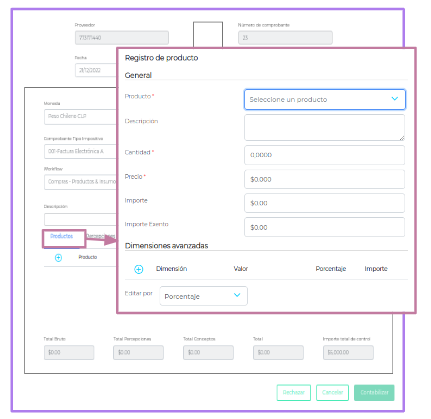 - Se podrá asociar órdenes de compra, notas de crédito y recepciones de compra.