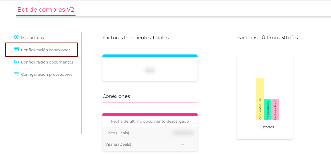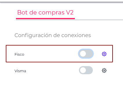 Menú → Aplicaciones → Bot de compras → Configuración conexiones