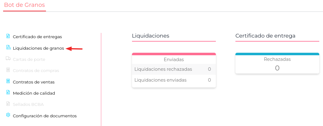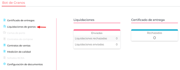 a. Desde la app de Bot de Granos ingresar a la opción de Liquidaciones de granos