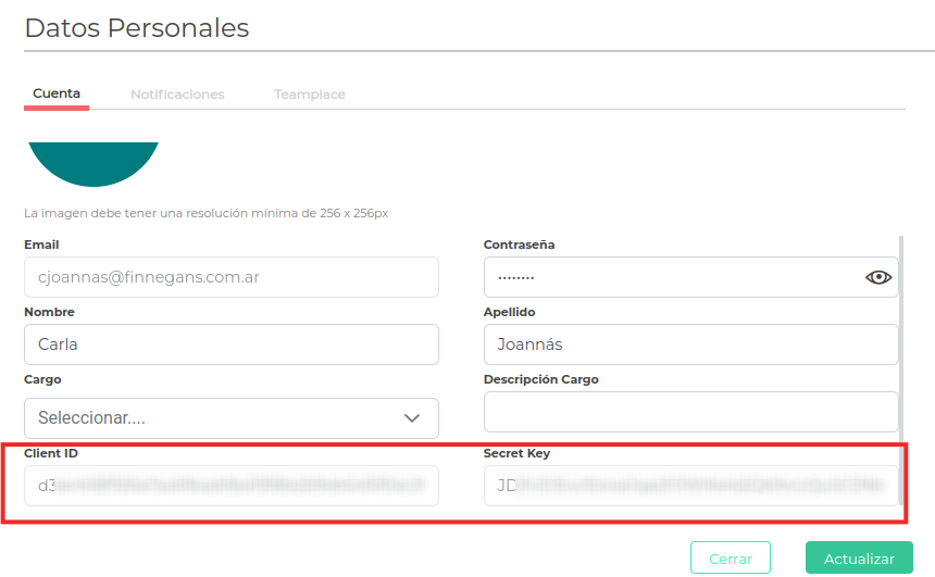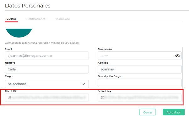 - Las keys se obtienen ingresando a “Modificar perfil” del usuario con el que se inició la sesión: