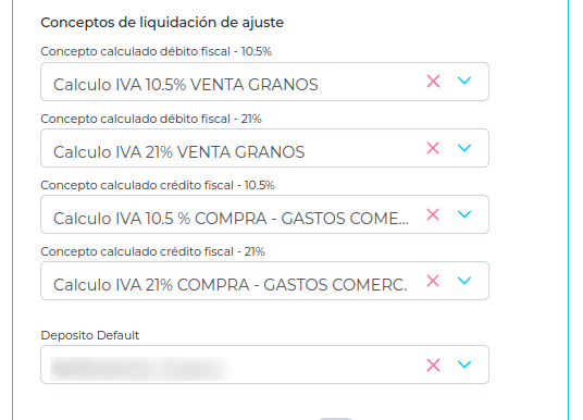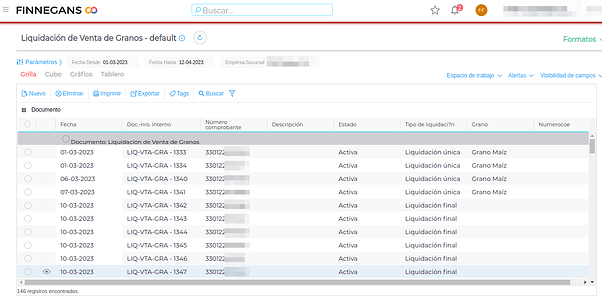 c. Activar el documento “Liquidación de granos” y completar el tipo de documento, workflow, conceptos calculados, depósito y guardar los cambios.