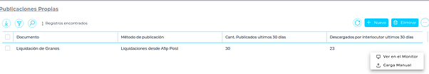 b. Desde la grilla, presionar en los puntitos que aparecen en la fila de liquidaciones, en el extremo derecho, y seleccionar la opción “Ver en el Monitor”