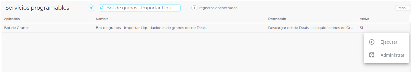 servicio “Bot de granos - Importar Liquidaciones de granos desde Deals”,