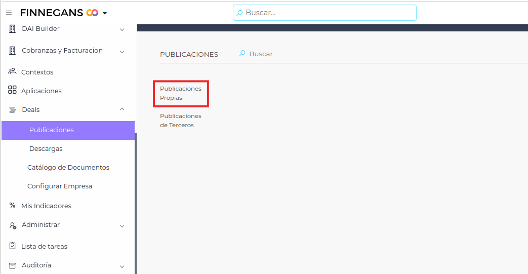 a. Desde DEALS ingresar a la opción Publicaciones > Publicaciones Propias
