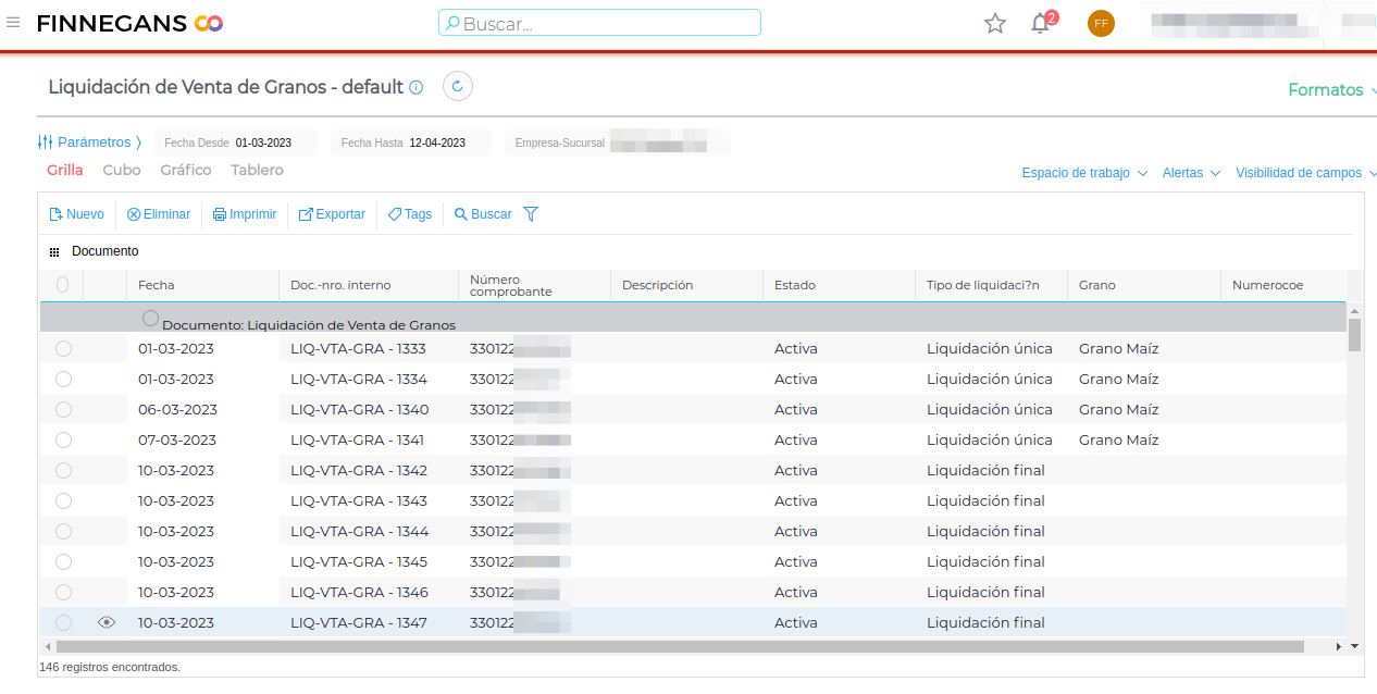 c. En la grilla que se despliega, se visualizarán las Liquidaciones que se importaron desde ARCA: