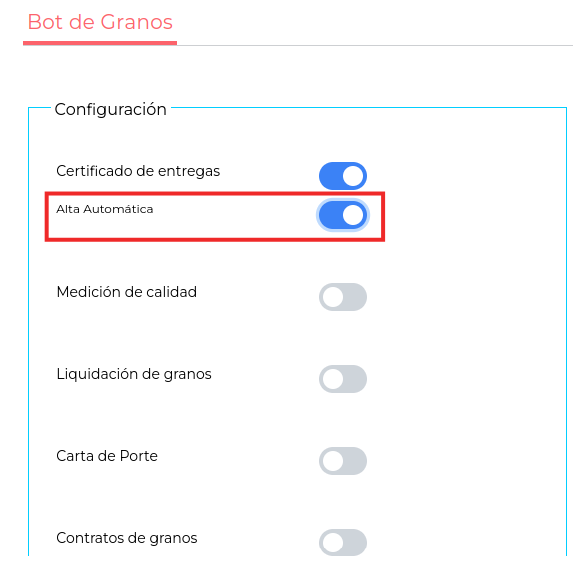 Configuración Carta de Porte en Bot de Granos