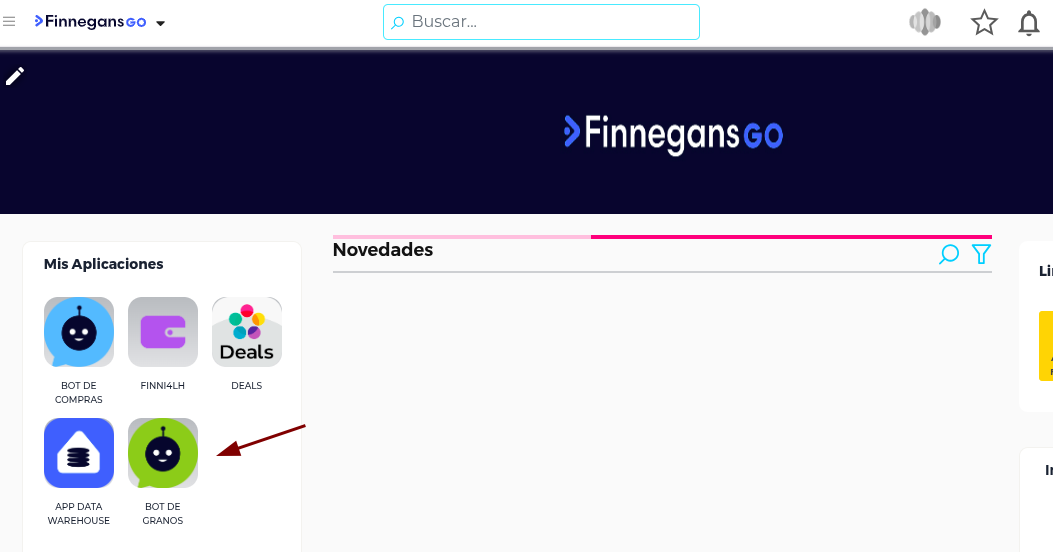 Pasos a seguir: En primer lugar, ingresamos al el Bot de granos por Mis Aplicaciones: