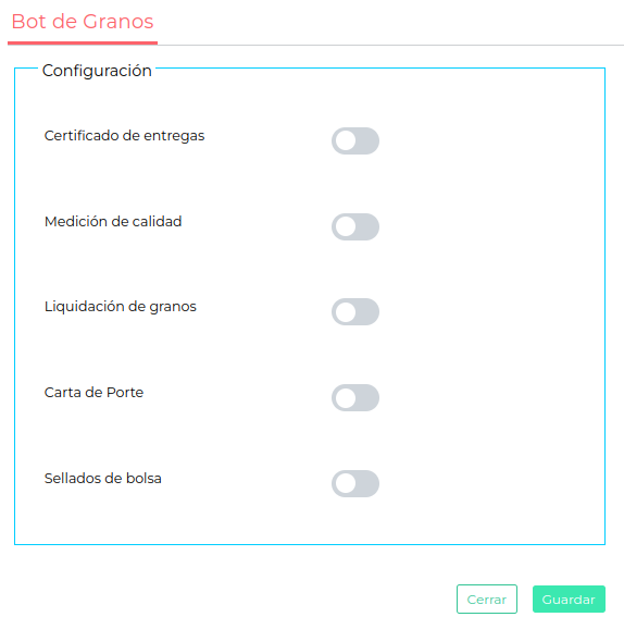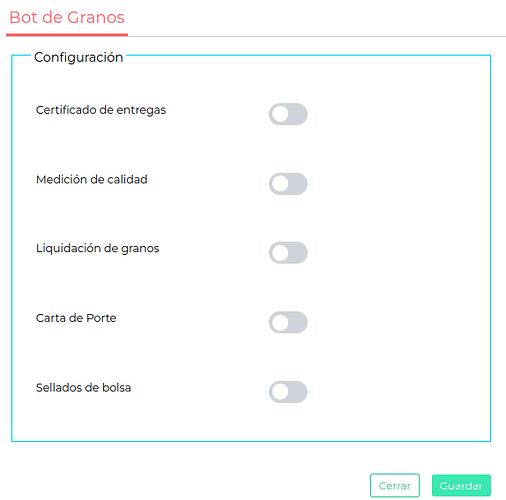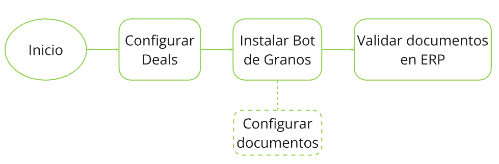 Nota: la configuración de procesos en Deals y de documentos en Bot de Granos se explica de manera detallada en cada integración disponible. Más abajo verás los links a los distintos instructivos de cada documento que quieras dar de alta.